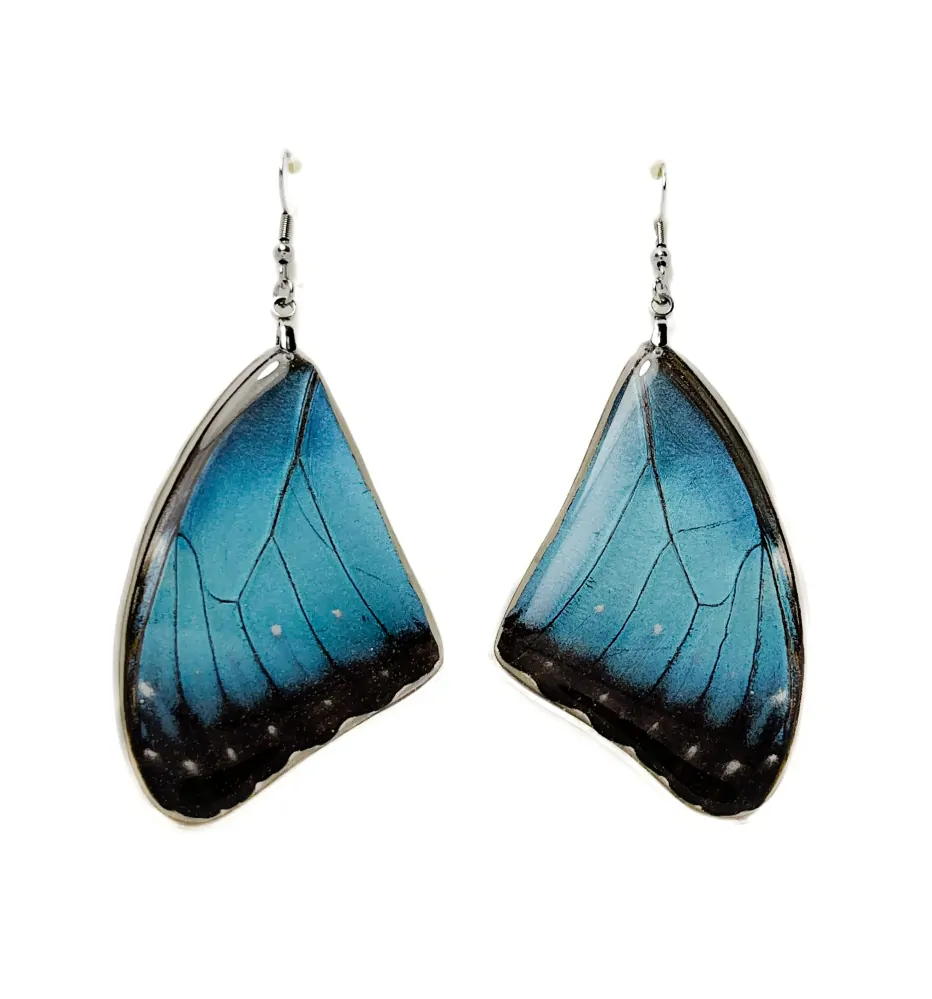 Originální oboustranné náušnice z křídla tropického motýla Morpho peleides.
