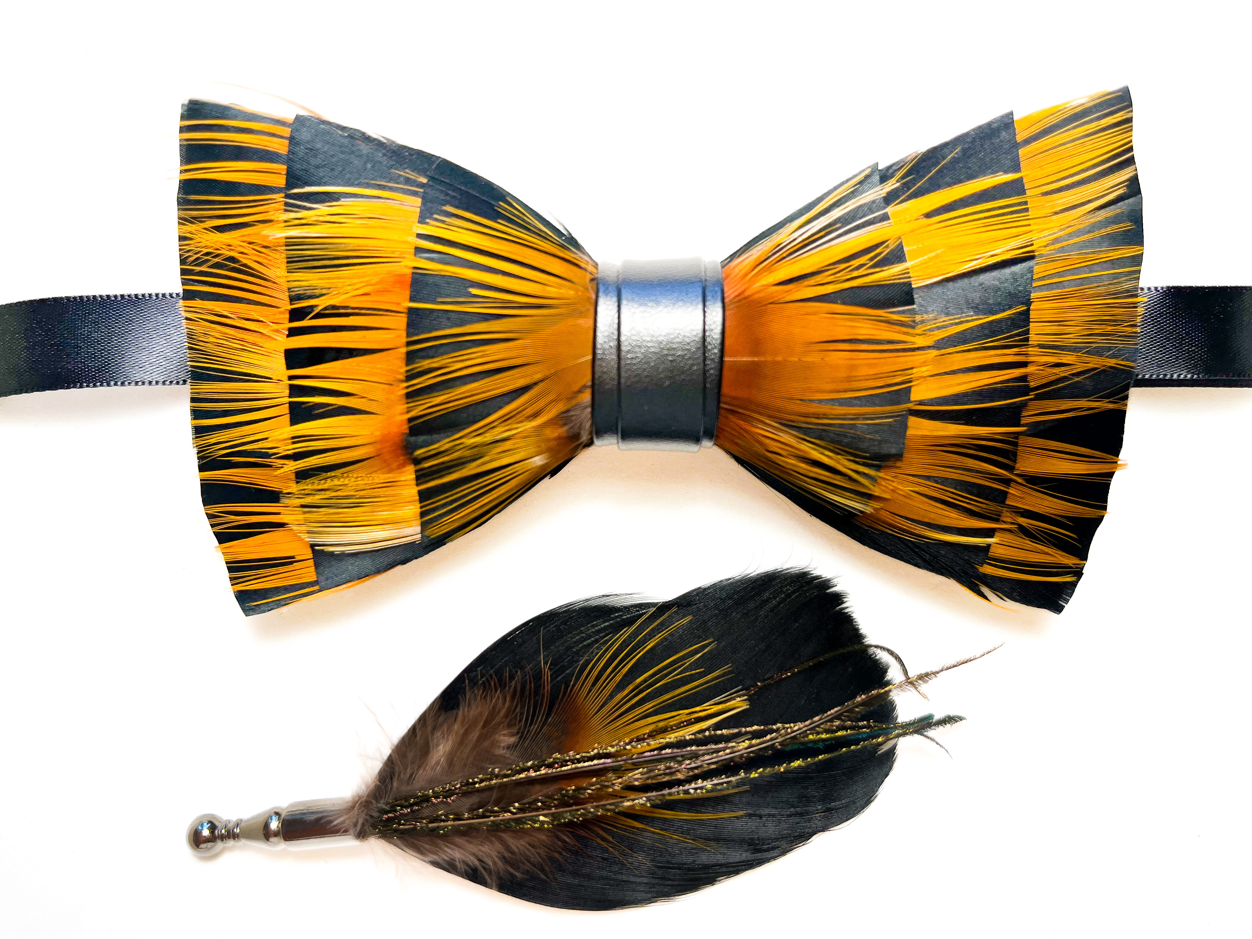 Pánský motýlek z peříček + spona No. 1983